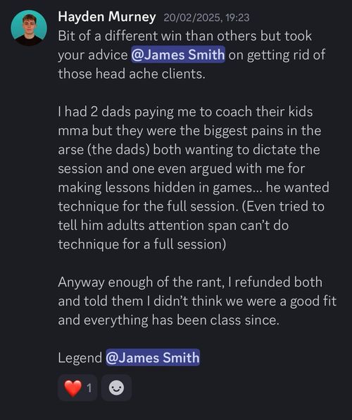 I hadn’t taken a vacation in five years as a PT. Three weeks after joining James’ mentorship, I’ve already closed $15k in new contracts and have 20+ leads — and I’m only 20% through the course. It’s been life-changing. If you’re a PT wanting to go online, this is the best way to do it.